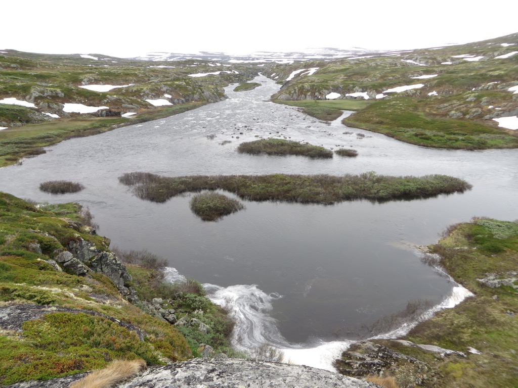 Fahrt auf der „Märchenstraße“ über das Hochplateau der nördlichen Hardangervidda mit kurzer Hose bei 7 Grad Celsius