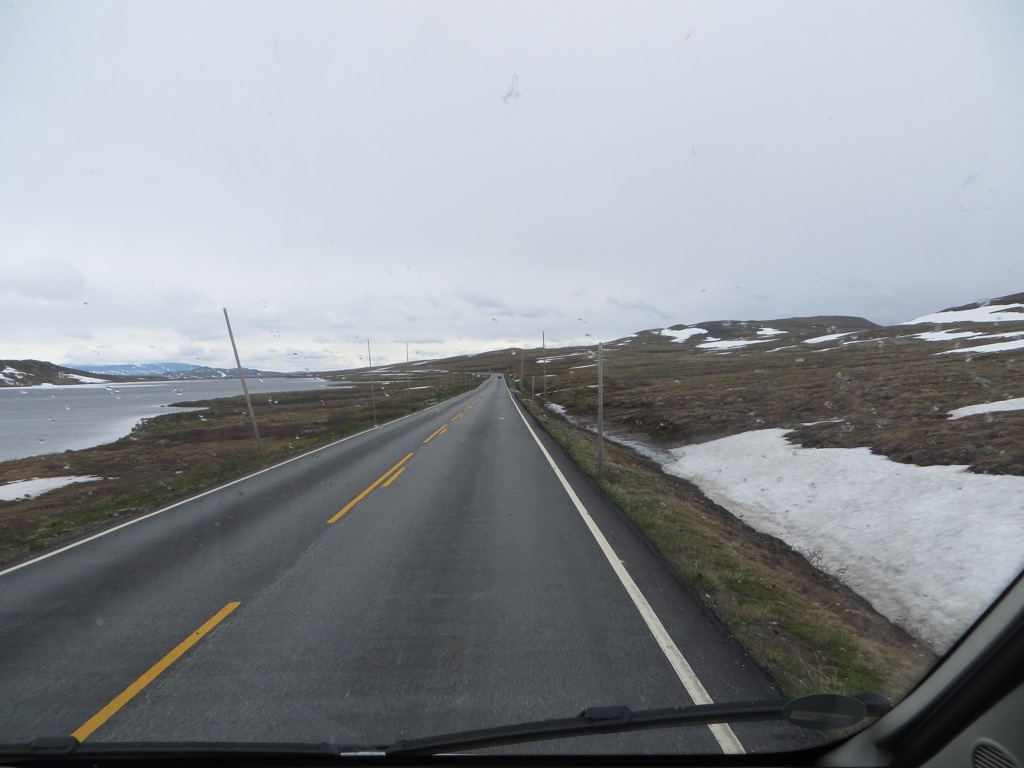 Fahrt auf der „Märchenstraße“ über das Hochplateau der nördlichen Hardangervidda mit kurzer Hose bei 7 Grad Celsius