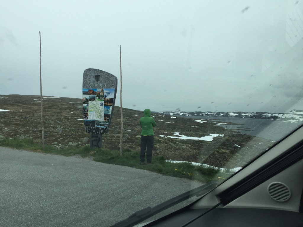 Fahrt auf der „Märchenstraße“ über das Hochplateau der nördlichen Hardangervidda mit kurzer Hose bei 7 Grad Celsius