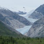Seit jeher faszinieren mich Gletscher. Meine Vorfreude auf den Jostedalsbreen Nationalpark war daher enorm. Mehr als die Hälfte des Nationalparks ist mit dem mächtigen Eis des Jostedalsgletschers bedeckt. Mit seinen 500 km2 ist er ist der größte Gletscher auf dem europäischen Festland. Seine unzähligen Gletscherzungen ergießen sich an den verschiedensten Stellen in ihrer eigenen Form zum Tal. Jede sieht dabei anders aus und ist ein Naturschauspiel für sich. Der Besucher hat die Qual der Wahl welche der Gletscherzungen er besichtigen möchte. Bei der Entscheidung helfen, wieviel Zeit man grundsätzlich für den Nationalpark hat und ob Aktivitäten, wie z.B. Wandern geplant bzw. gewünscht sind. Einige der Gletscherzungen können fast aus dem Auto heraus bewundert werden, andere erst nach einer kurzen oder längeren Wanderung. Bei den meisten kann das Eis nur aus einiger „Entfernung“ bewundert werden und nur bei wenigen ist es möglich auf einfachem Wege direkt bis ans Eis heranzukommen.