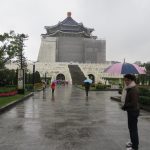 China Airlines bietet diesen Service seinen Transitpassagieren an. Die Tour am Morgen war uns zu früh, so haben wir an der Nachmittagstour teilgenommen. Im strömenden Regen ging es zur Chiang Kai-Shek Memorial Hall und zum Longshan Temple, zwei Touristenattraktionen in Taipeh. Das Ganze wurde sehr professionell von einer Reiseagentur durchgeführt. Wir waren insg. nur 5 Touristen in einem kleineren Touristenbus mit einem Guide und einer Fahrerin. Das Design dieses Busses ähnelte sehr stark dem unserer Busse zur Jugendzeit unserer Eltern. Wir fühlten uns gleich in eine andere Zeit zurückversetzt. Als erstes ging es zur Chiang Kai-Shek Memorial Hall. Vom Flughafen war es eine gute Stunde Fahrzeit. Der Guide hat diese Zeit genutzt, um uns einige Daten und Fakten zu Taipeh mit auf den Weg zu geben. Es war wirklich sehr interessant und kurzweilig. Beim Blick aus dem Fenster flogen die Hochhäuser nur so an uns vorbei. Richtig große „Wohnsilos“. Platz ist hier wirklich Mangelware. So wundert es auch nicht, dass ein großer Teil der Autobahn vom Flughafen in die Stadt auf einer Brücke verläuft – sozusagen eine Etage höher.