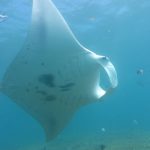 Konzentrierte Begegnungen mit Haien in größerer Anzahl gab es nur am Tauchplatz Vertigo und dort auch nur aufgrund der von uns nicht geschätzten Anfütterung. Mantas waren auch nur an einem einzigen Tauch-Spot, genannt „Stammtisch“, ihrer Putzerstation, anzutreffen. Hier verharrten die Taucher so lange auf 5-6 Meter, bis sich endlich einer oder mehrere der Mantas zeigten. Dies konnte ganz schnell gehen oder auch schon mal 30 Minuten (plus/minus) dauern. Bei 1-2 Tauchgängen ist dies sicherlich noch ganz spannend, aber nicht, wenn man jeden Tag diesen Tauchspot einmal anfährt. Von Roberts 10 gemachten Tauchgängen ging es 5x zum Stammtisch, 3x zu Vertigo und nur 2x zu einem anderen Tauchspot. Ich muss allerdings fairerweise sagen, dass die Auswahl der einzelnen Tauchspots stark abhängt vom Wetter und von den Mittauchern. Angeblich war das Wetter (Wind)/Gezeiten/Strömungen nicht so, dass eine Fahrt in die südlicheren Tauchgebiete möglich gewesen wäre. Ob dies wirklich so wahr, können wir leider nicht beurteilen. Zum anderen war der Großteil der Taucher auf Haie und Mantas fixiert und hatten daher leider kein großes Interesse an anderen Tauchplätzen. Und da es leider immer nach der Mehrheit ging, hatten die anderen, die nicht ausschließlich auf Haie und Mantas fixiert gewesen sind und die gerne auch einmal etwas Anderes gesehen bzw. kennengelernt hätten, die Arschkarte gezogen. Durch eine andere Organisation bzw. Zusammenstellung der Tauchboote hätte man hier sicherlich einiges erreichen bzw. alle unterschiedlichen Interessen zufrieden stellen können.