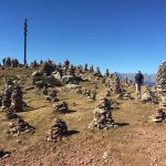 Nicht weit entfernt vom Hotel & Restaurant Terra Place befinden sich die Stoanernen Mandlen*). Von der in nächster Nachbarschaft liegenden Sarner Skihütte geht es in ca. 1 ¼ Std. zu ihnen hinauf. Die meisten Wanderer benutzen die Route über die Auener Alm. Die Route besteht hier aus einem geschotterten Weg der in einer gewissen Steigung stetig nach oben führt. Dieser Weg liegt in einer „Rinne“. Die Sicht ist somit auf die Berge & Wiesen entlang des Weges eingeschränkt. Es gibt allerdings noch eine alternative Route. Diese haben wir für unsere Wanderung ausgewählt. Und es war die richtige Wahl. Keine Menschenseele unterwegs. Wir hatten den Weg für uns ganz alleine. Zudem noch gesegnet mit einer wunderschönen Landschaft und traumhaften Panoramaausblicken. Die Alternativroute beginnt kurz nach dem Parkplatz an der Sarner Skihütte. Direkt am Wegweiser zur Auener Alm geht es bereits links weg. Der Weg führt auf einem einfachen Wanderpfad durch den Wald nach oben. Es sind dabei nur gute 300 Höhenmeter zu überwinden. Unterwegs bieten sich immer wieder traumhafte Ausblicke auf das Sarntal und den dahinterliegenden Bergmassiven. Oben angekommen öffnet sich der Blick auf die kargen Bergwiesen und weitere eindrucksvolle Berggipfel. Auch die „Schotterstraße“ auf der sich die Masse der Wanderer nach oben begibt ist gut sichtbar. Leider gehören wir nicht zu den Bergkundigen. Und so haben wir uns wieder einmal gedacht: „Selig sind die, die sich auskennen und die Namen der einzelnen Berge und Bergmassive kennen!“. Der Weg führt dann am Rande des „Massivs“ weiter über Wiesen bis direkt zu den Stoanernen Mandeln. Auch auf diesem Stück des Weges begleiteten uns einzigartige Aussichten auf das Sarntal. Je näher wir unserem Ziel kommen umso mehr Wanderer sind unterwegs. Die aufgeschichteten Steinhaufen scheinen ein Touristen-Anziehungspunkt schlechthin zu sein. Verschiedene Wanderwege von unterschiedlichen Startpunkten führen zu ihnen. Die Steingebilde sind wirklich eindrucksvoll. Noch faszinierender war für uns jedoch der Panoramarundblick von dort oben. Bergmassive, die nicht eindrucksvoller sein könnten. Davor die karge Graslandschaft, die uns an den Dovrefjell und Rondane Nationalpark in Norwegen erinnerten. Für den Rückweg haben wir dann allerdings den „Schotterweg“ gewählt. Wollten wir doch in der Auener Alm auf einen Kaiserschmarrn einkehren. Leider hatte die Hütte die Saison bereits beendet und war schon geschlossen. Enttäuscht machten wir uns auf das letzte Stück des Weges zurück zur Sarner Skihütte. Diese hatte Gott sei Dank geöffnet und auch einen Kaiserschmarrn im Angebot. Der Nachmittag war damit „gerettet“! Die Wanderung war wirklich wunderbar und reich an Höhepunkten. Sie hat uns so gut gefallen, dass wir sie im nächsten Jahr ganz sicher wiederholen werden.